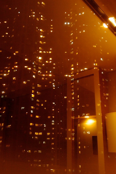 此時此刻的我坐在香港西環某家飯店的一角 窗台外是一大片的高樓住宅